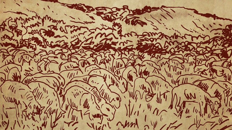 Sur la graille, le mouton sait ce qui attend l’homme, ce travail immense qui ressemble à une folie.